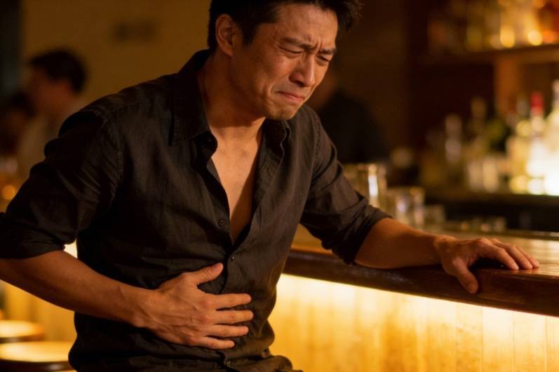 酒后右上腹现闷胀凄迷之症,此部位乃肝脏方位:若饮酒后该处婉曲胀痛、闷痛,并非胃痛,实则是肝脏因炎症肿大,刺激肝包膜所致,这是乙醇肝加剧的蹙迫征兆。